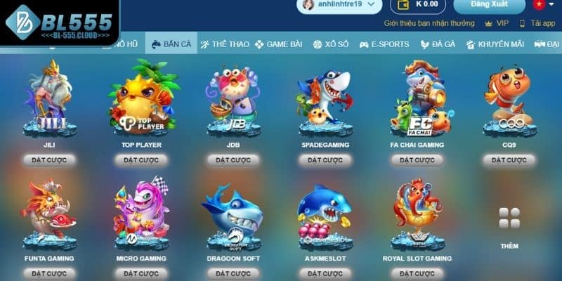 Không chỉ gây ấn tượng bởi giao diện bắt mắt và gameplay dễ tiếp cận, Bắn Cá BL555 còn được biết đến với hệ thống nhà phát hành đa dạng, phục vụ mọi phong cách người chơi. Mỗi sảnh sở hữu thế mạnh riêng về nội dung, phần thưởng và trải nghiệm mở ra cơ hội săn cá đổi thưởng cực kỳ hấp dẫn.